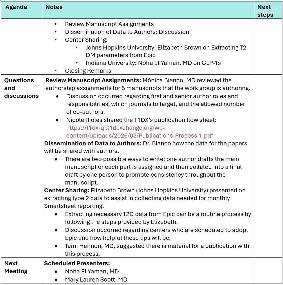 Pediatric T2D Work Group meeting minutes, 4/10/2026