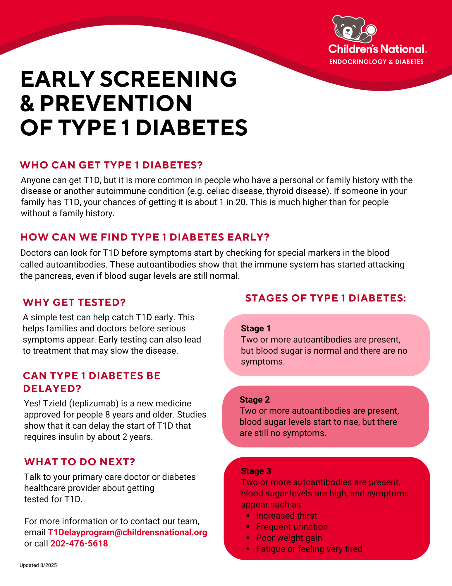 - Staging and monitoring protocols for early-stage T1D
